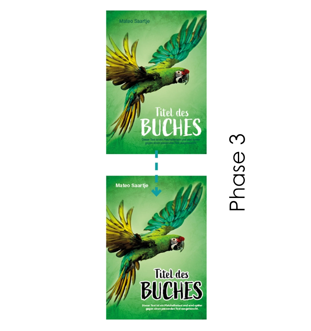 In der zweiten Woche erstellen wir drei Versionen des Gesamtentwurfs, der deinen Wünschen entspricht. Dabei gehen wir auf sprachliche Missverständnisse ein und schlagen zwei weitere Variationen vor, um sicherzustellen, dass wir dein Wunschcover gestalten. Du gibst uns wieder Feedback zu jedem Entwurf.