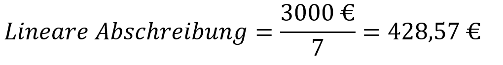 Dafür gibt es den Wechsel zwischen den beiden Methoden. Denn: Der lineare Abschreibungbetrag würde allerdings 428,57 € betragen.