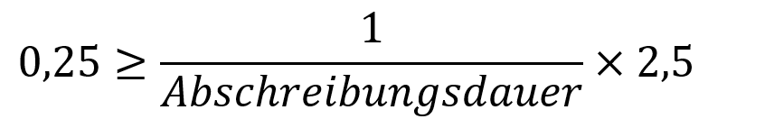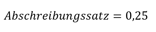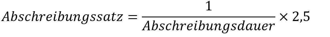 Der Abschreibungssatz in der degressiven Abschreibung beträgt das 2,5fache der linearen Abschreibung, darf aber nicht mehr als 25 % betragen.