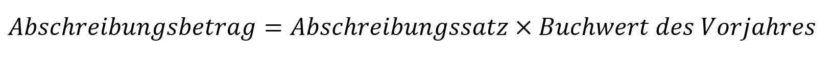 Grundsätzlich berechnen wir in jedem Jahr den Abschreibungsbetrag. Er entspricht dem Abschreibungssatz, der jedes Jahr immer wieder neu auf den aktuellen Restbuchwert angewendet wird. Bei der linearen Abschreibung waren die Anschaffungskosten wichtig, hier ist jetzt aber nur der Restbuchwert relevant.