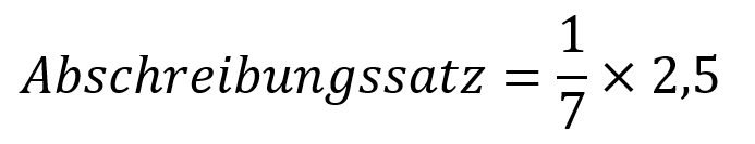 Der Abschreibungssatz errechnet sich, wie ich im vorherigen Absatz schon geschrieben habe, nach dem linearen Satz. Den errechnest du durch den Kehrwert der Nutzungsdauer.
