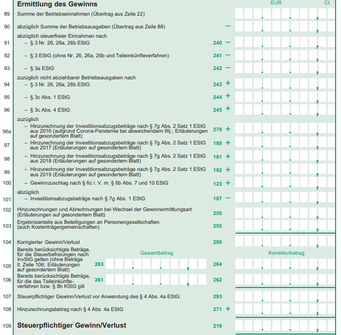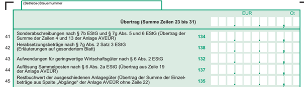Nun überträgst du einfach nur noch Zahlen. Alles andere ist nicht relevant, wenn es dir nicht ins Auge fällt und du genau weißt, dass hier etwas für dich in Frage kommt. Wenn du einen Investitionsabzugsbetrag gebildet hast und ihn nun hinzurechnen musst, dann weißt du das sicherlich selbst.