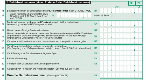 Zeile 22: Addiere deine Betriebseinnahmen und trage die Zahl hier ein.