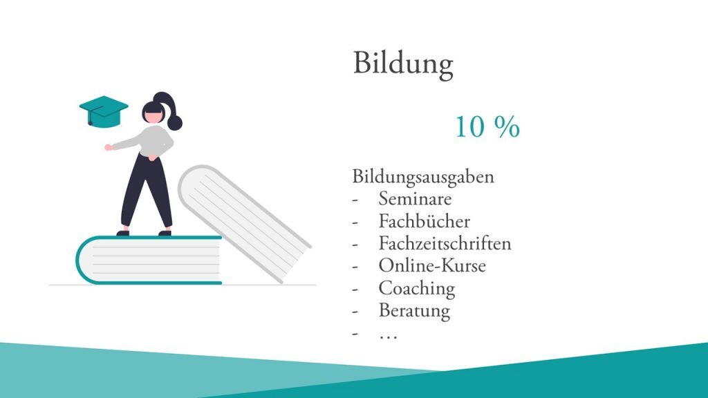 Dir ist vielleicht aufgefallen, dass hier kein „Kleiner gleich“-Zeichen vorangestellt ist. 10 % deiner Einnahmen sollst du für deine Bildung ausgeben.