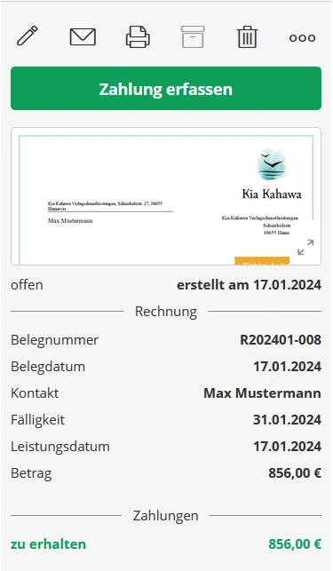 Zuerst hast du natürlich eine Rechnung erstellt. Du hast also alle Angaben im System erfasst.