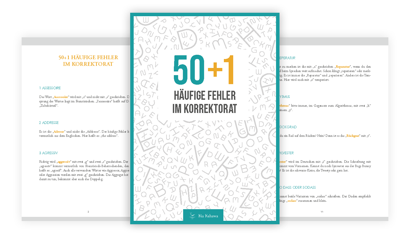 Wir haben im Team rumgefragt und die häufigsten über 50 Rechtschreib-, Interpunktions-, Grammatik- und Kontinuitätsfehler zusammengetragen.