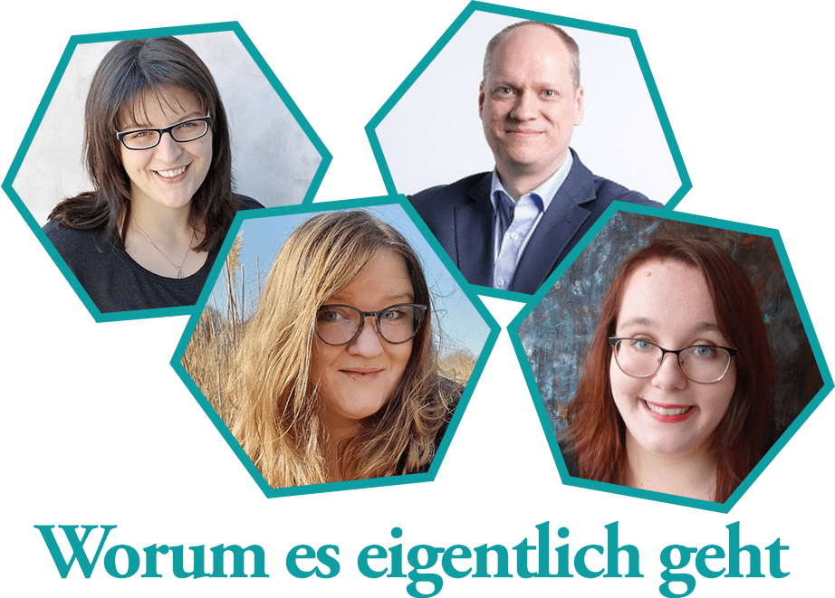 Ich möchte jetzt gerne mit meinen Gästen über die Message hinter unseren Büchern sprechen, denn Protagonist und Antagonist haben Ziele und tun Dinge. Und dann geschehen Konflikte. Die Geschichte löst sich auf, aber dennoch hat ein Buch so eine grundlegende Aussage, diese Message.