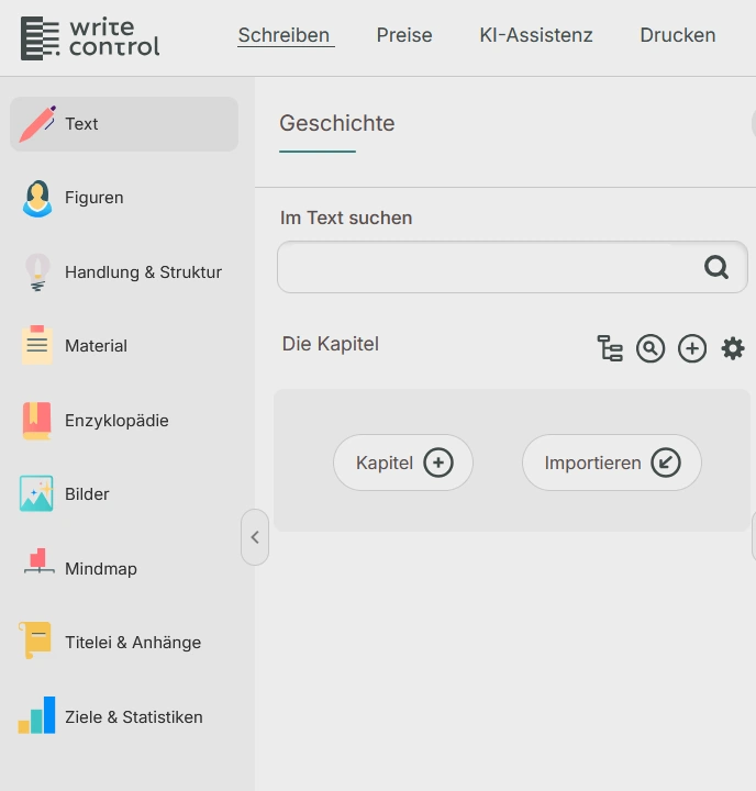 Das Menü von WriteControl.